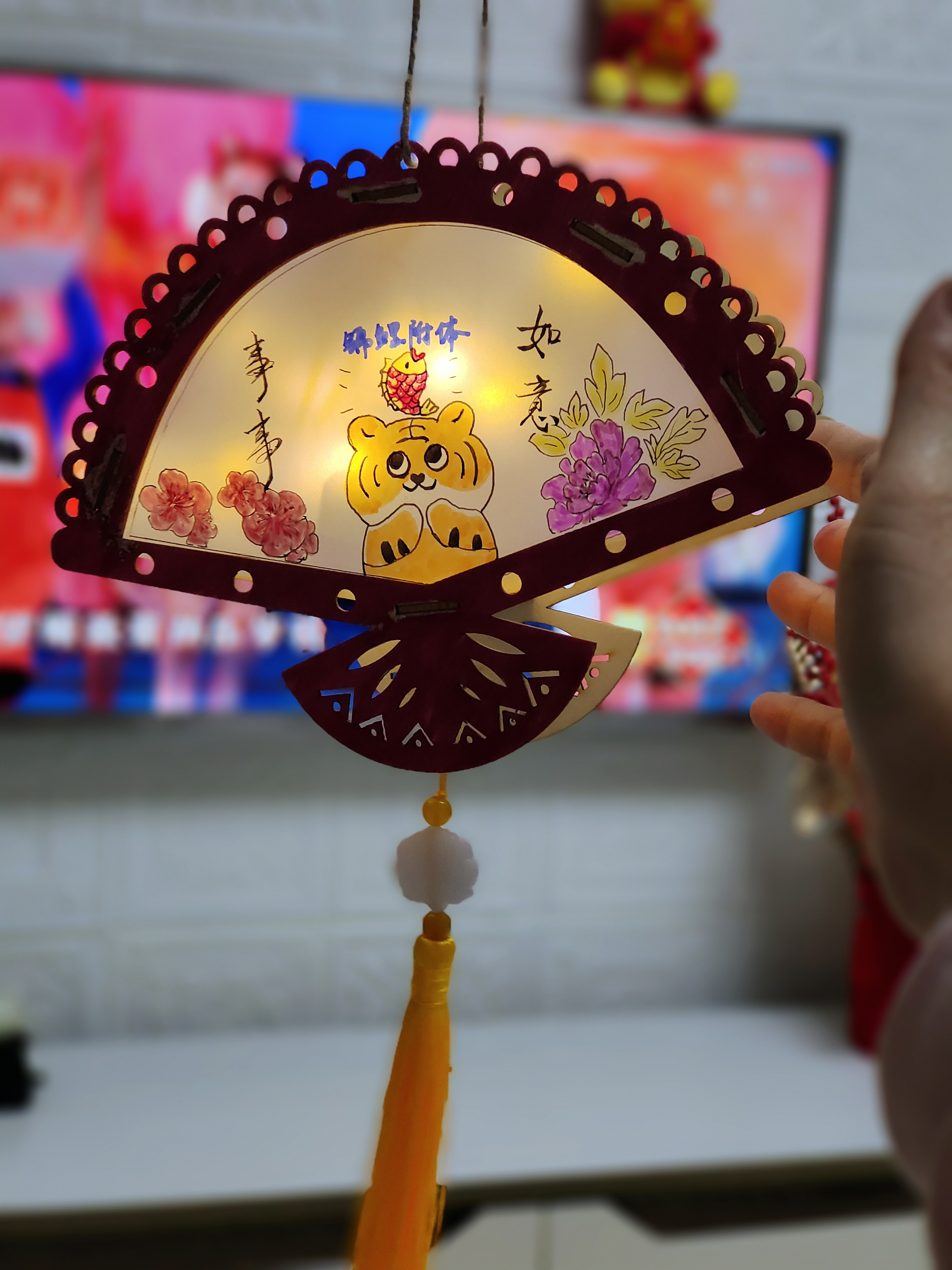 猜完燈謎,就到了大家最期待的做花燈環(huán)節(jié)。大家拿到材料包后,迫不及待地打開研究起來。集團的小哥哥小姐姐們小心翼翼修剪、鏤空好燈面,并仔細地將不同的燈面粘貼、拼接起來。最后給燈籠掛上流蘇,頂部裝好燈桿,內部插上彩燈后,一個精美的元宵燈就誕生了。“這是我親手做的燈籠,象征幸福、祥和,簡直太好看了!”做好燈籠的邵山成就感滿滿,興奮地和燈籠合影留念。