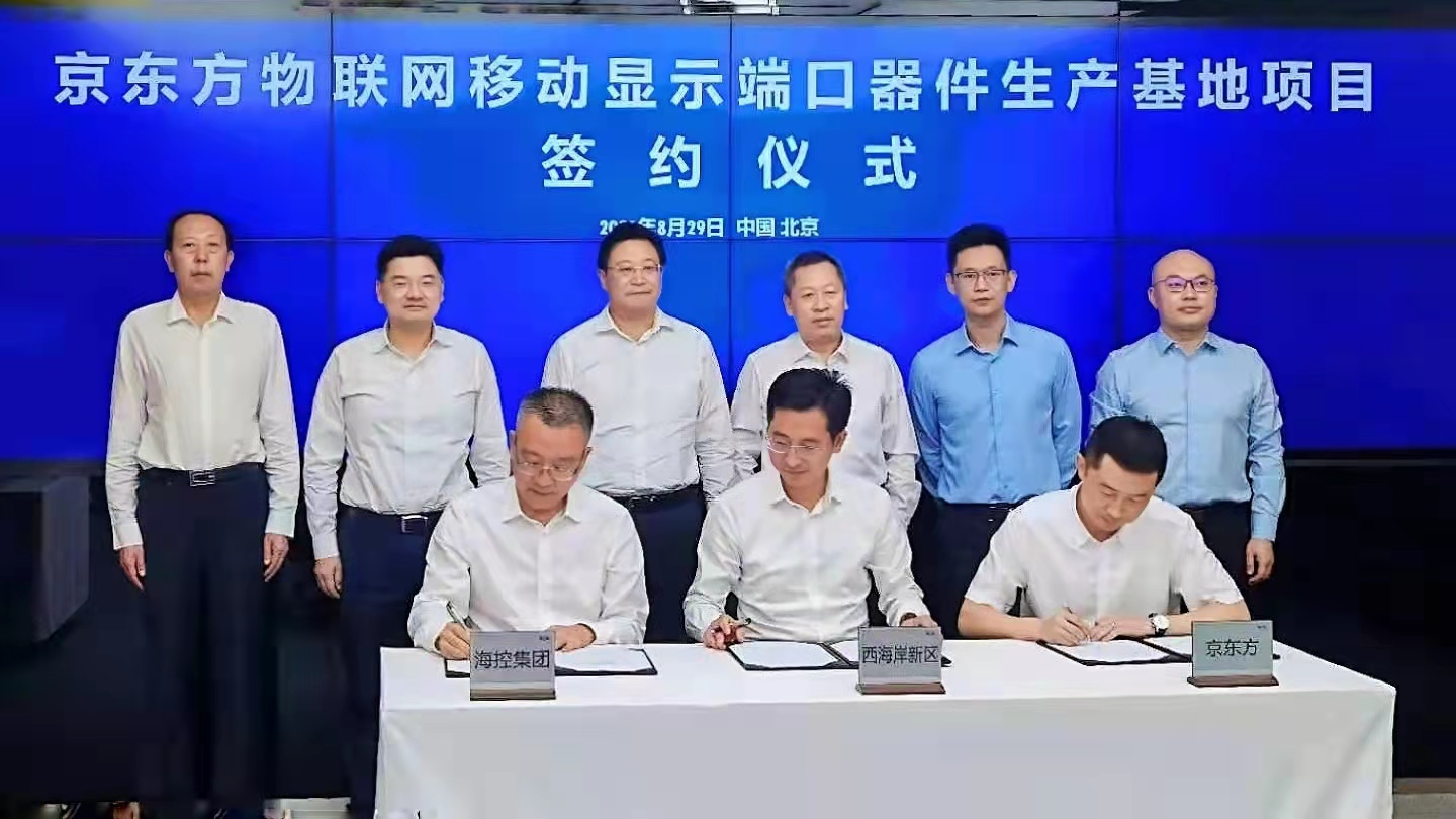 8月29日,青島西海岸新區管委、海控集團和京東方科技集團股份有限公司簽署京東方物聯網移動顯示端口器件生產基地項目投資框架協議,將在青島西海岸新區投資建設全球最大的移動顯示模組單體工廠。